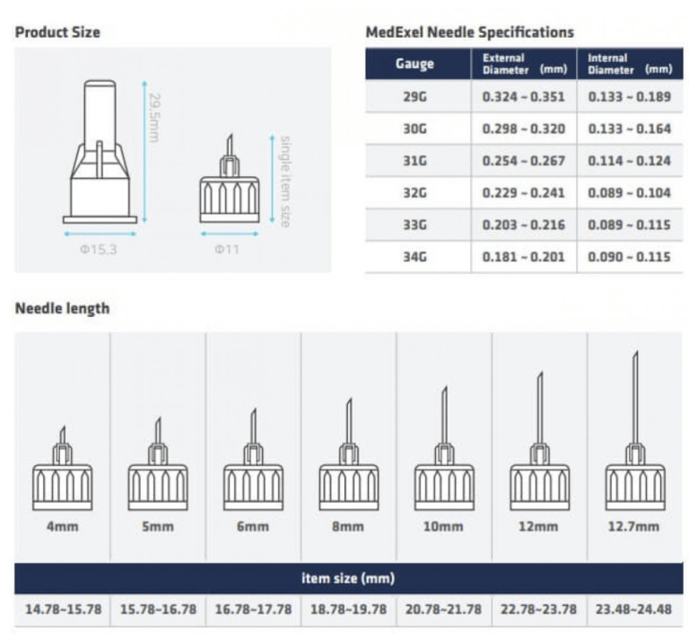 *Most insulin pen needles can be as small as 4 mm as described in the following chart.