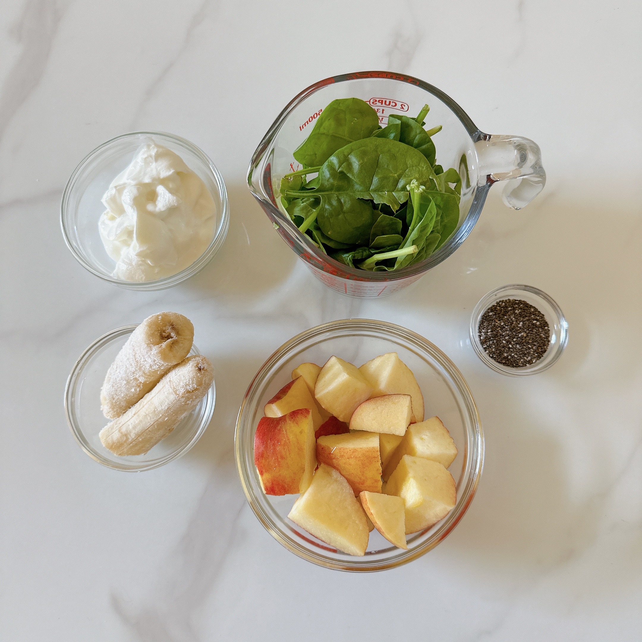 - Comienza agregando yogur griego, agua y espinacas a la licuadora. Mezcla hasta que la mezcla esté suave y cremosa.