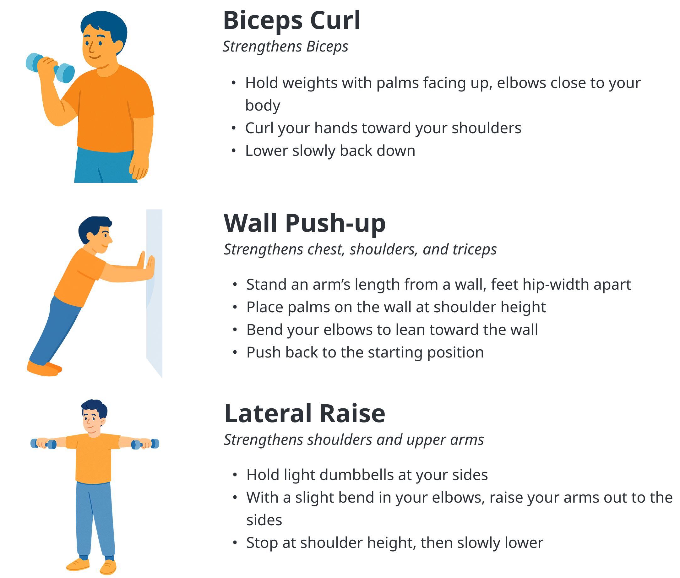 Strength training exercise helps keep your muscles and joints strong. They support balance, protect your joints, and can even help ease muscle and joint pain over time—especially when you do them regularly.