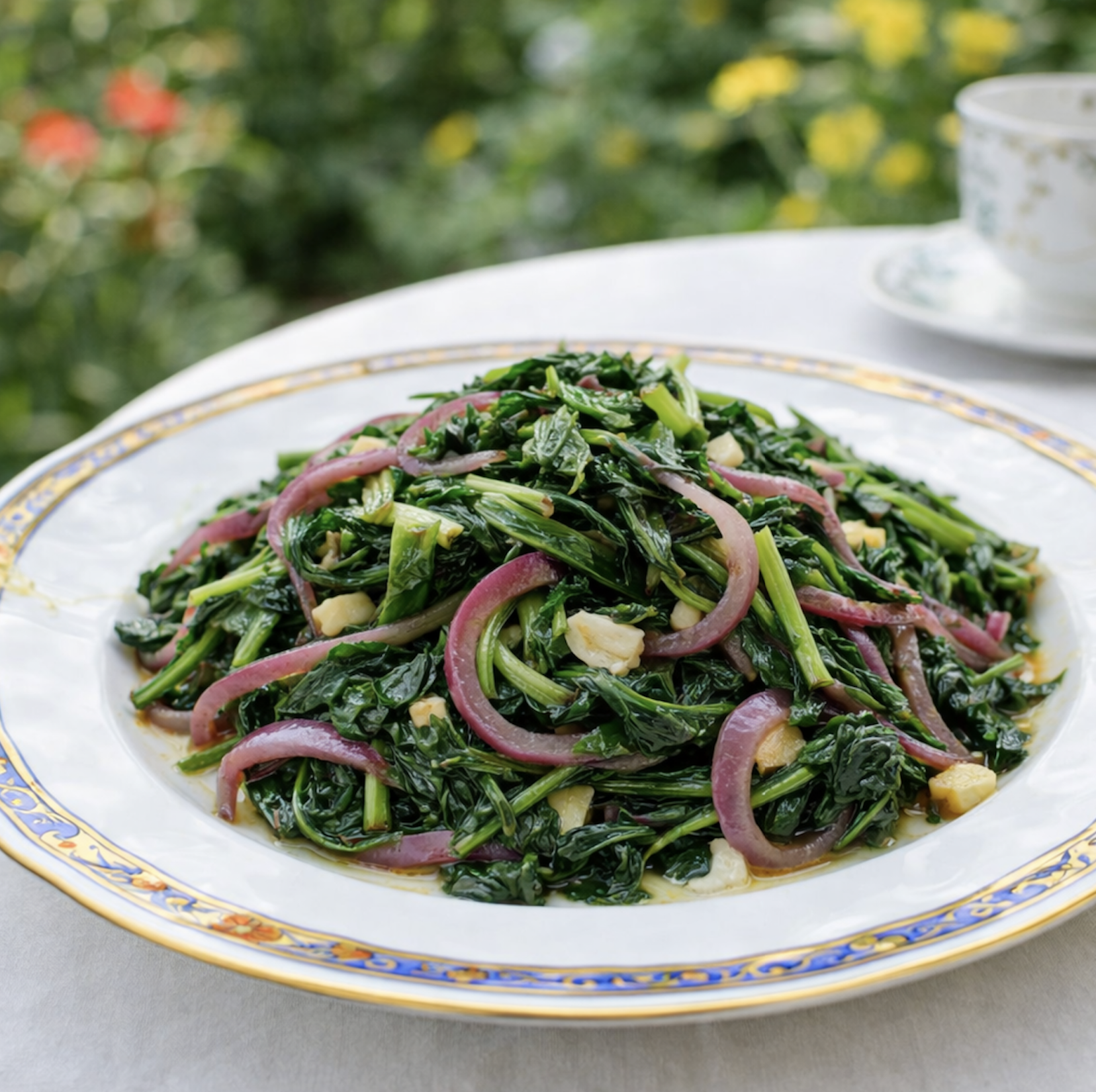 Dandelions grow wild all over California — from sidewalks to gardens to open fields — and their leaves are packed with nutrients. When sautéed with garlic and olive oil, these earthy, slightly bitter greens transform into a flavorful and cleansing side dish. These greens are very common weeds all over the world, not just in the US. They’re a big part of authentic mediterranean diets, and are found all over every region of Italy and many parts of the levant, and also in asian countries, too! In Chinese herbal medicine, dandelion greens are valued for their cooling, detoxifying properties, often used to “clear heat” and support liver and digestive function. Similarly, in Mediterranean traditions greens like these are valued for “cleansing the blood” and aiding digestion.
