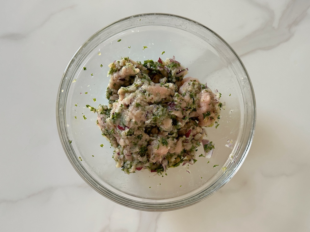 - Tạo thành các viên thịt gà tây có kích thước 1 inch và đặt lên tấm nướng.
