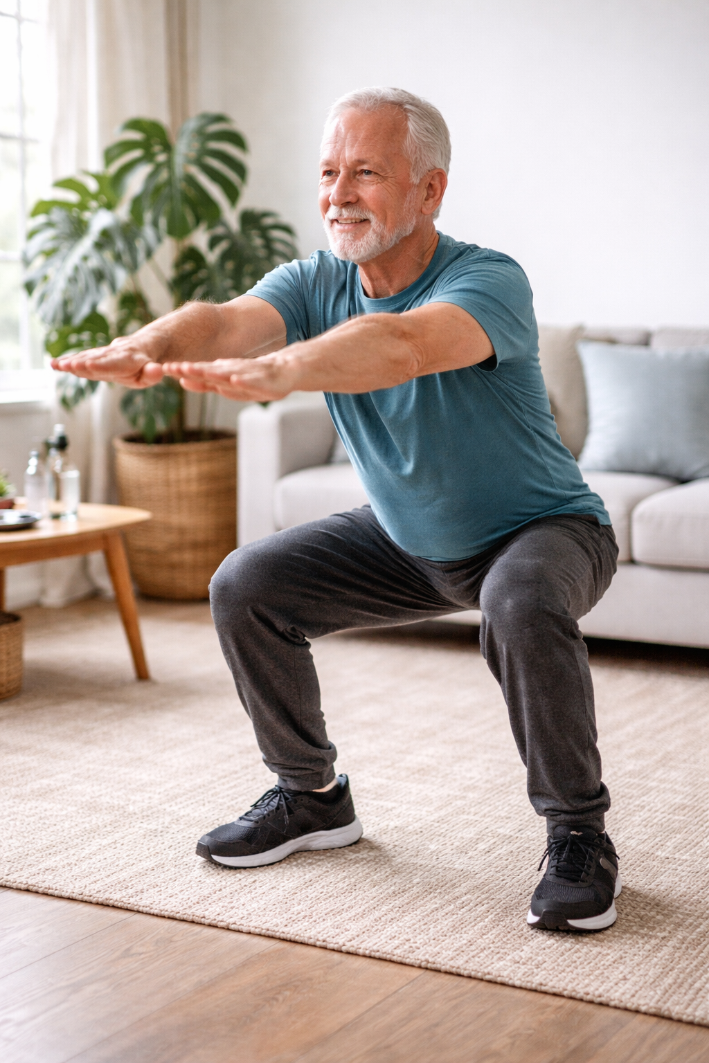 Looking to strengthen your legs and core without jumping, heavy weights, or complicated equipment? This simple routine is designed to build strength safely — especially for older adults who want to move better, feel stronger, and reduce fall risk.
