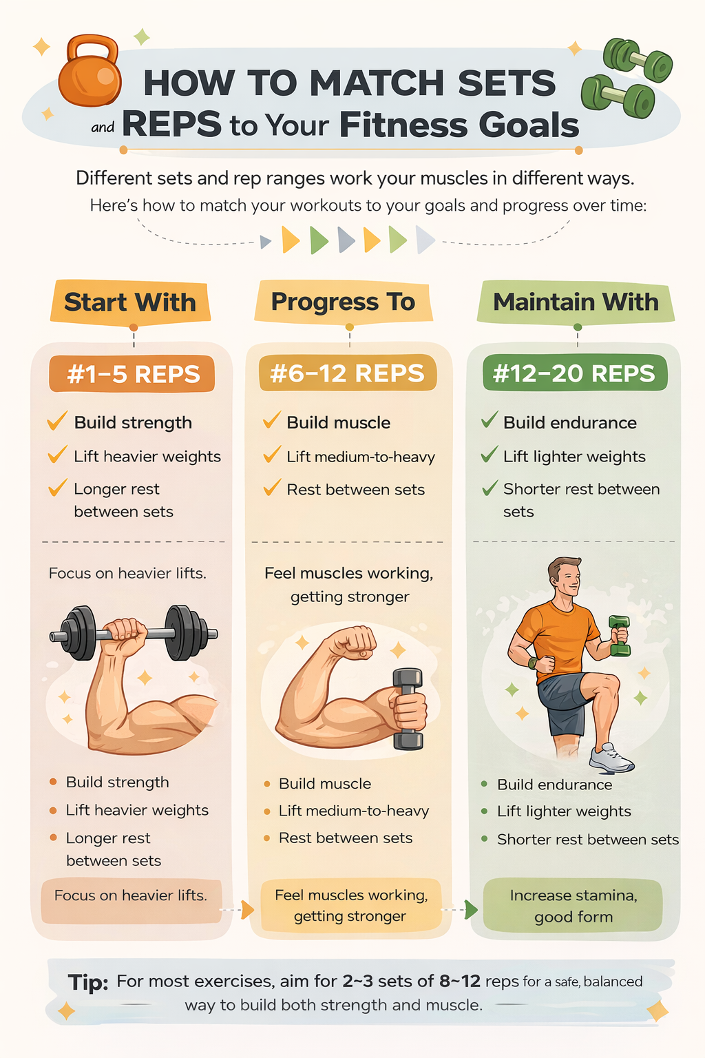 Knowing Reps and Sets can help you build your plan and monitor your progress over time.