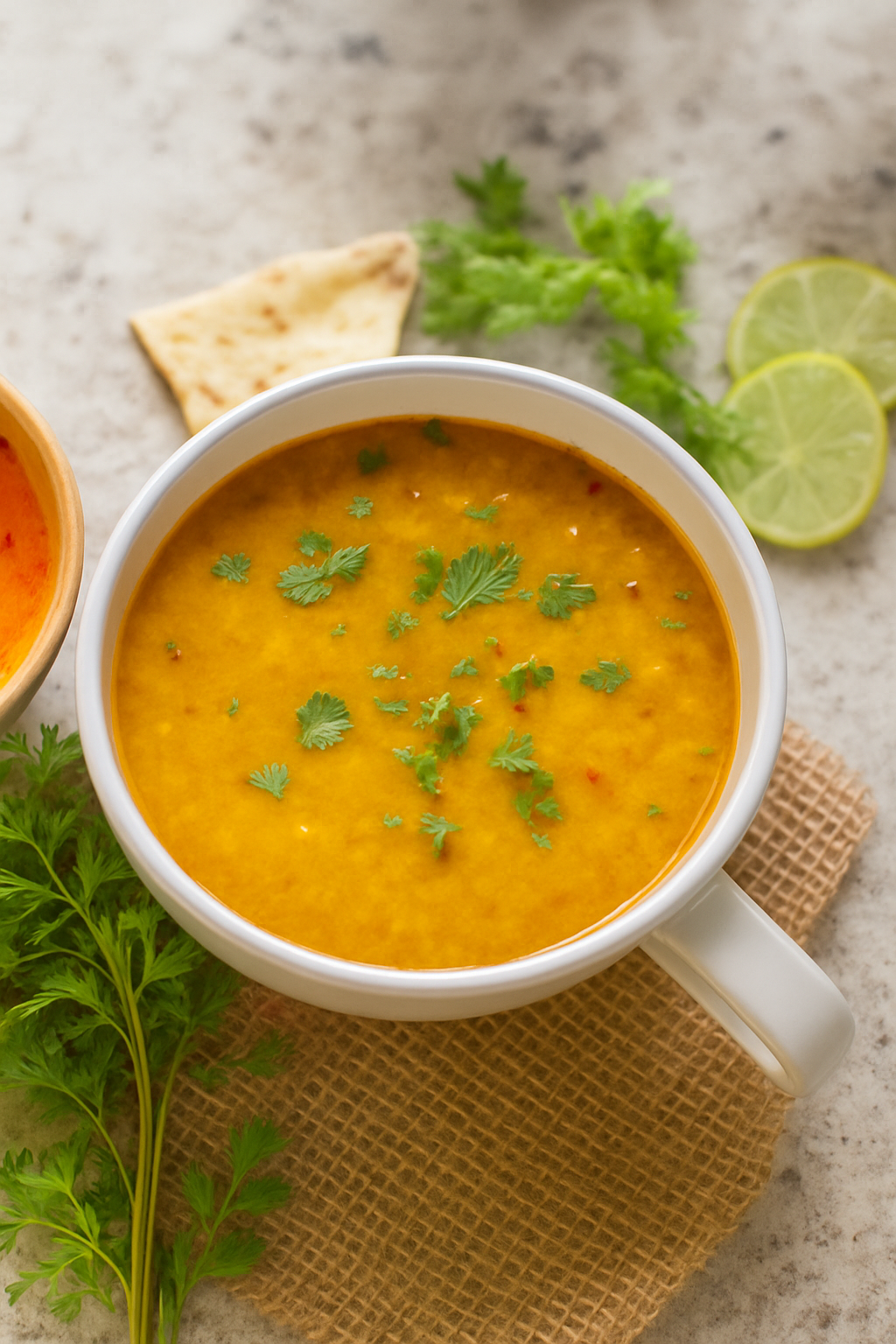 Toor dal (split, hulled pigeon peas) is one of the most popular everyday dals enjoyed in Indian homes. It's easy to make stovetop, or it can be prepared quickly in a pressure cooker or Instant Pot. It can be lightly seasoned or spiced as desired. In Northern India, it's typically served plain.